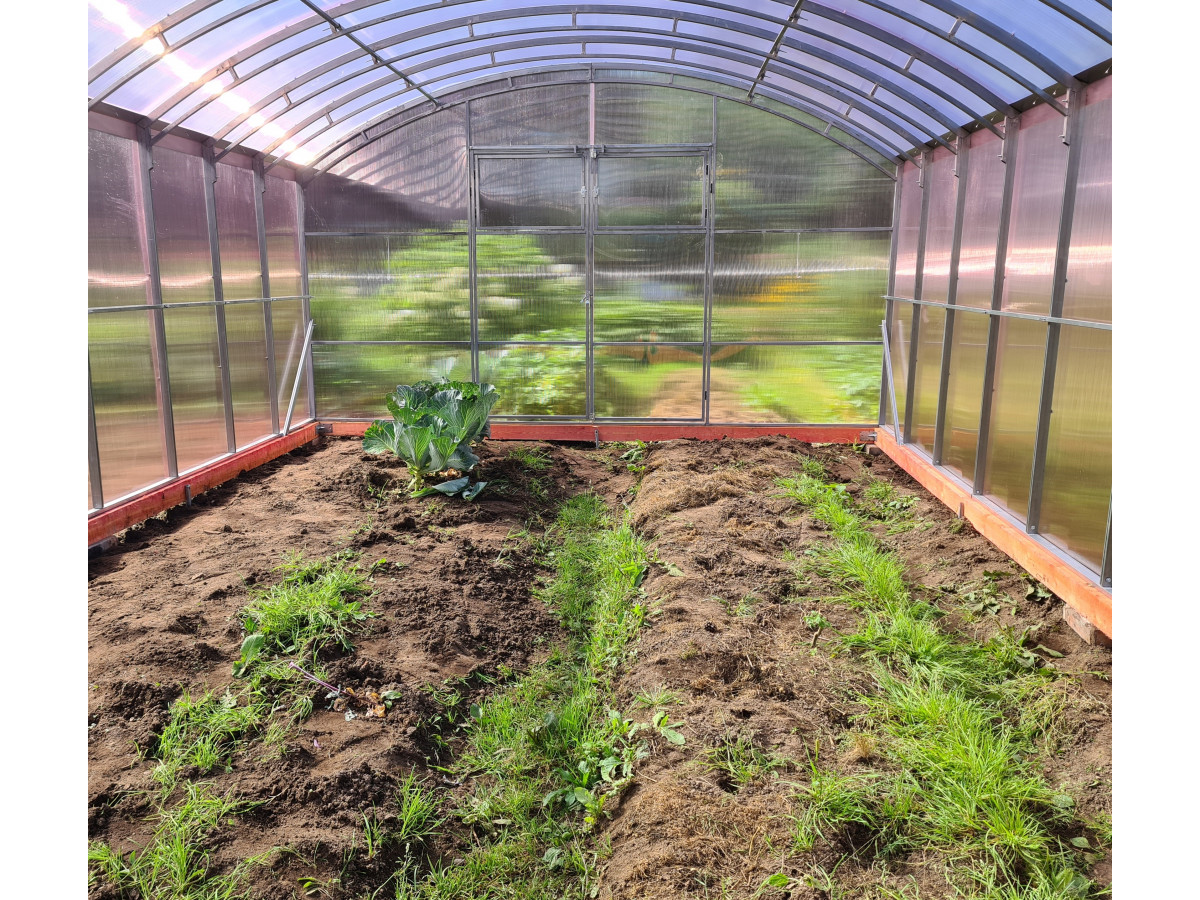 - широкая 4 м, ширина теплицы позволяет организовать 3 широкие полноценные грядки с комфортными проходами между ними;