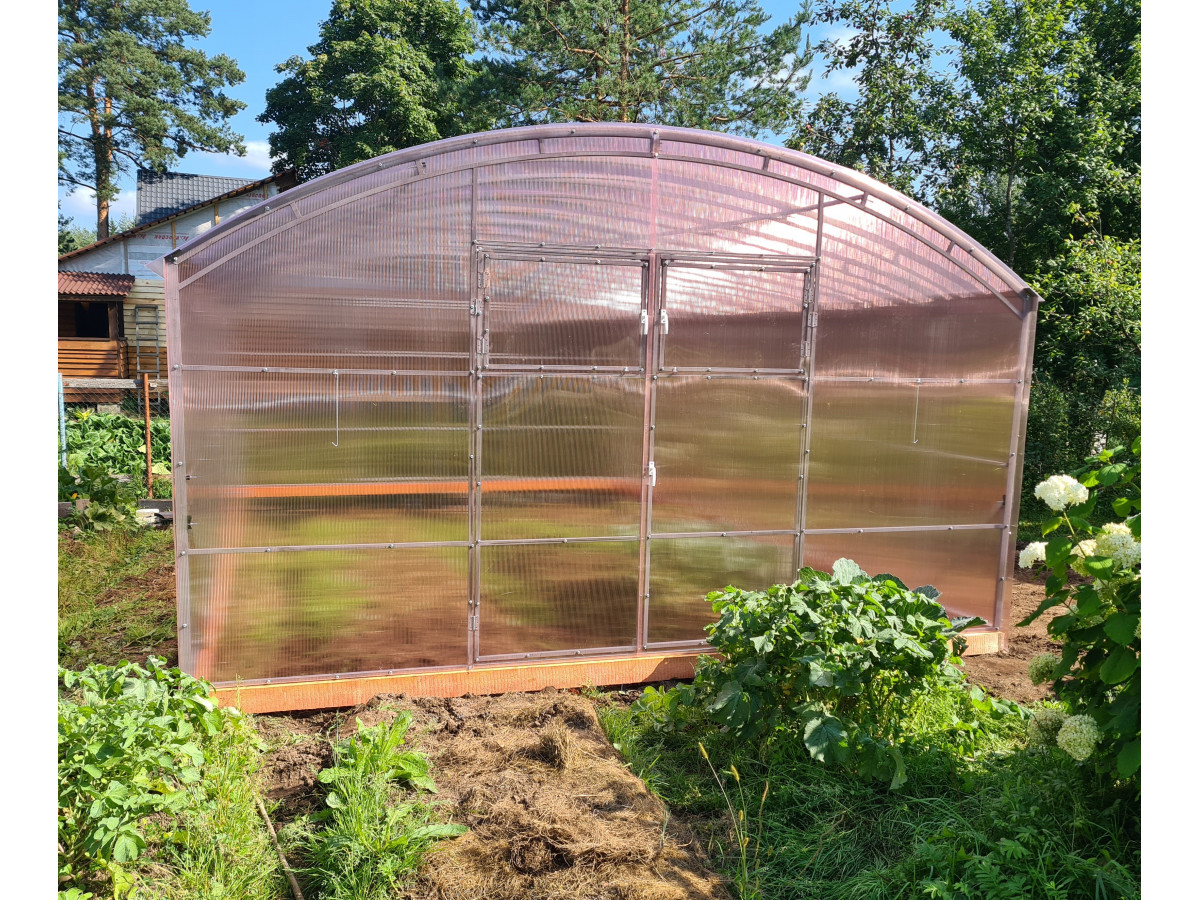 - теплица рекомендована для северных широт с большим количеством осадков, выдерживает порывистые ветра и сильные снегопады, не деформируется под слоем слежавшегося снега толщиной до 90 см;