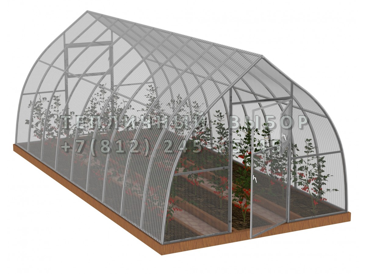 Теплица из поликарбоната Усиленная Капелька 2,5х6 h=2.3 м профиль 25х25 мм